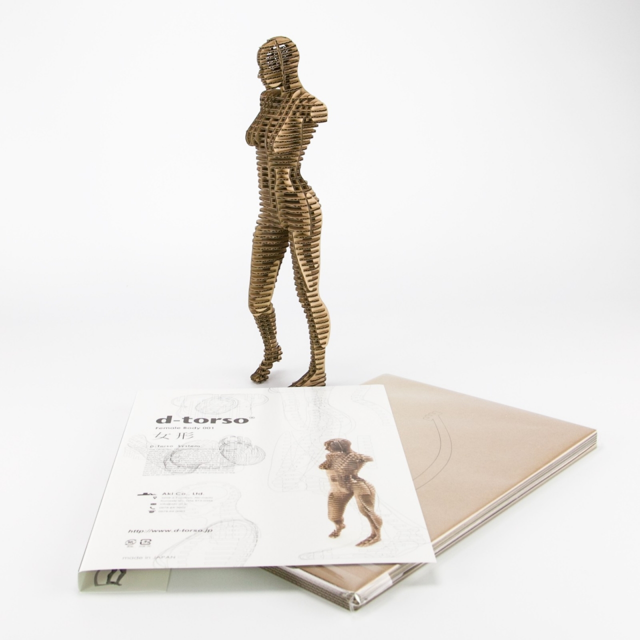 これまでの「ヒトのカタチノ」シリーズは静的でシンメトリーな形態がほとんどでしたが、女形シリーズでは身体を動きの中で切り取った形象をテーマとして製作します。001 Female Body は女性の静かな立ちポーズのトルソーです。頭部から体幹、腰のひねりをとおして二脚が静かに着地するまでの力の流れ、女性の身体のたたずまいを表現しました。