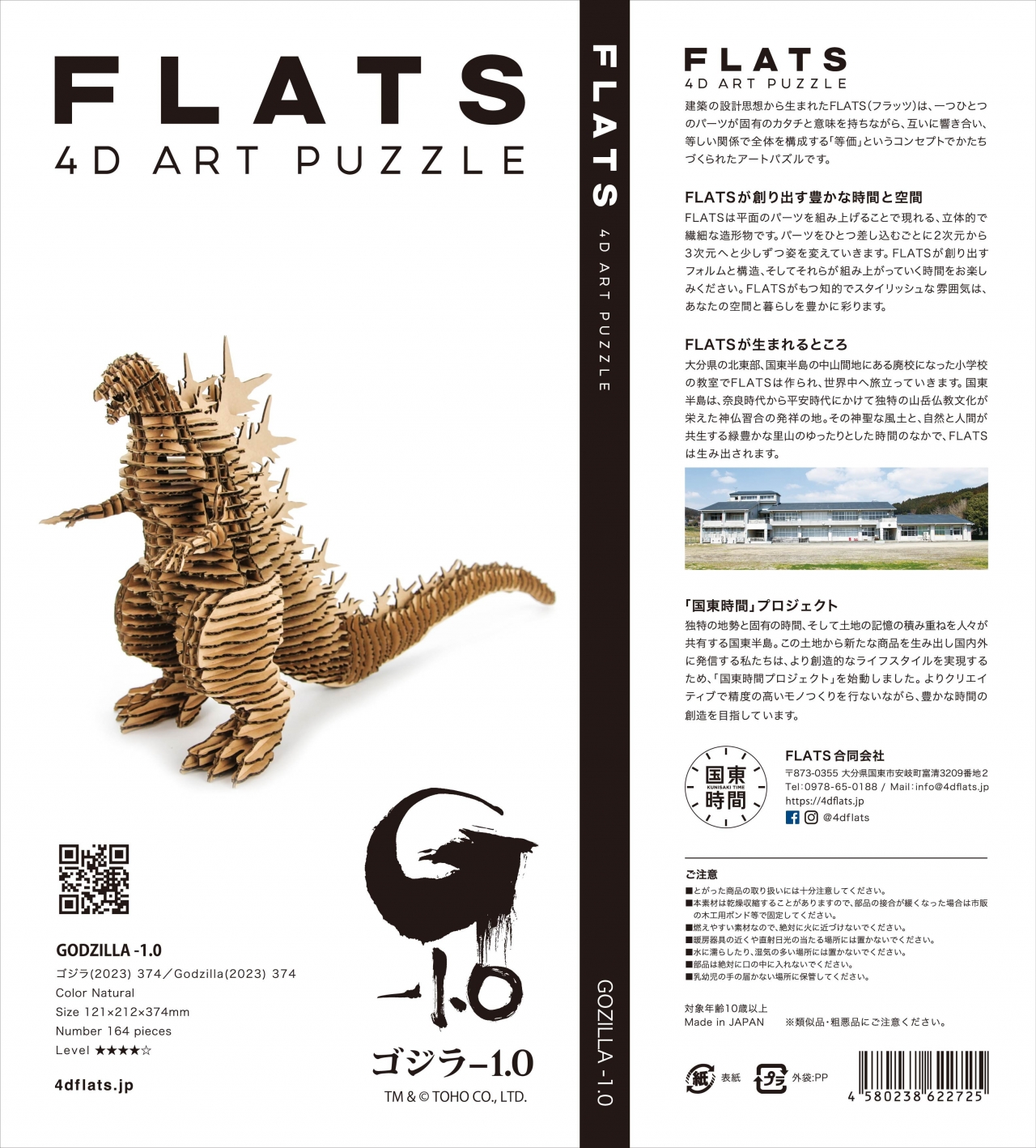 東宝株式会社のライセンスにより、FLATS合同会社が製作した『ゴジラ』70周年記念作品「ゴジラ-1.0」に登場するゴジラモデルのダンボール製組み立てキットです。