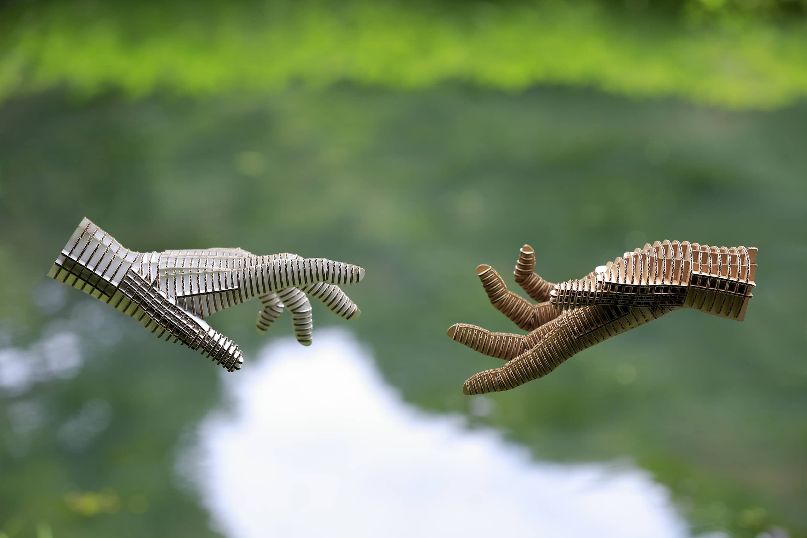 西欧では狩猟で仕留めた鹿の頭部などを剥製にして壁に飾ったりする、ハンティング・トロフィーがありますが、カタチは似ていてもFLATSアニマルハンガーはちょっと趣が違います。FLATSアニマルハンガーは、動物に、環境に、そして人間にも、 とっても優しい「壁(洋服)掛け」です。 もちろん、わたしたちは動物を狩ったりしませんし、それを誇らしげに飾ったりもしません。それどころか、わたしたちは動物に綺麗な服を着せてあげさえします。 動物たちは100%自然由来の紙材料でできているのでわたしたちの環境に対する負荷がとても小さい商品です。 そして、ときに服を着た壁際のユニークな動物たちは、わたしたちを微笑ませたり、癒したり、幸せな気分にしてくれます。