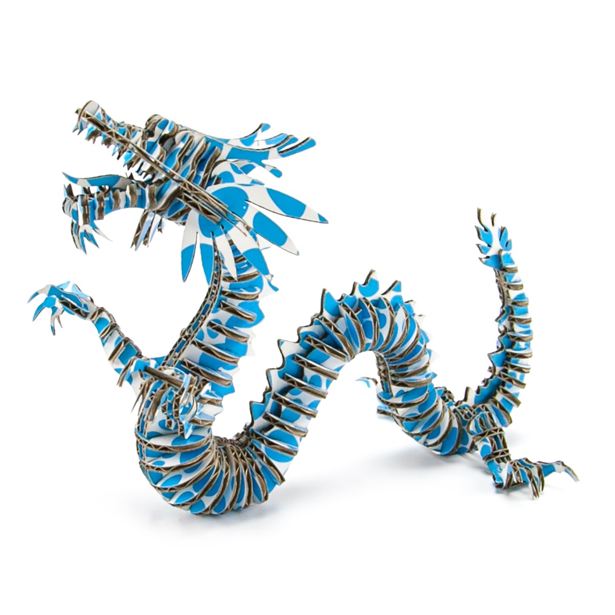 戌年からはじまり、毎年その年の干支の動物をモチーフとして製作されるd-torso干支シリーズ。d-torso「辰段」は2012年の辰年につくられた龍モデルです。龍モデルの本体は121個の部品からなり、爪、髭、角など先端部にいたるまで繊細に仕上げられたディテールが特徴です。龍の形態は九似、すなわち九つの部位がそれぞれ他の動物に似せてつくられています。角は鹿、耳は牛、頭はラクダ、目は兎、鱗は鯉、爪は鷹、掌は虎、腹はミズチ、うなじは蛇の特徴を持ちます。それぞれの特徴線を編成して、ひとつのイメージを形づくることは、d-torsoの最も得意とするところです。複数の記号を合体させた龍モデルは、そういう意味でd-torsoのコンセプトをもっともわかりやすく体現したモデルだといえます。