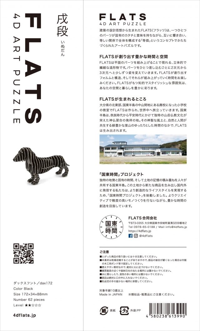 FLATS ダックスフンドは、ダンボール製のミニチュア11種の他に大型のモデルの商品バリエーションがあります。はさみやカッター、接着剤を使わずに組み立てる事ができます。FLATSの精緻な造形による干支シリーズをどうぞお楽しみください。