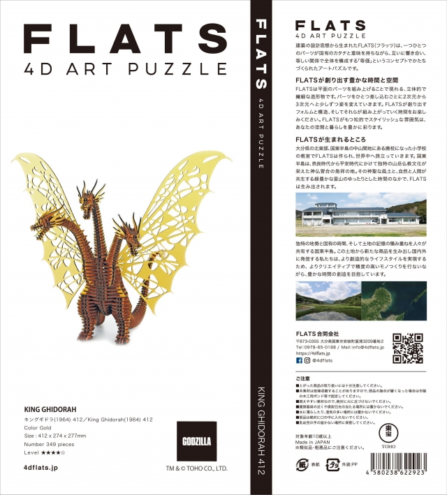 東宝株式会社のライセンスにより、FLATS合同会社が製作したキングギドラのダンボール製組み立てキットです。