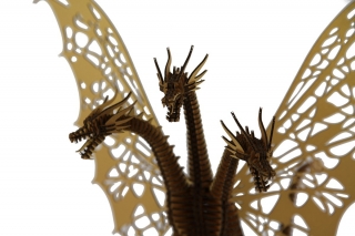 1964年に公開された映画「三大怪獣 地球最大の決戦」、1965年の「怪獣大戦争」、1968年の「怪獣総進撃」で使用された初代キングギドラのオリジナルデータをもとに再現しました。