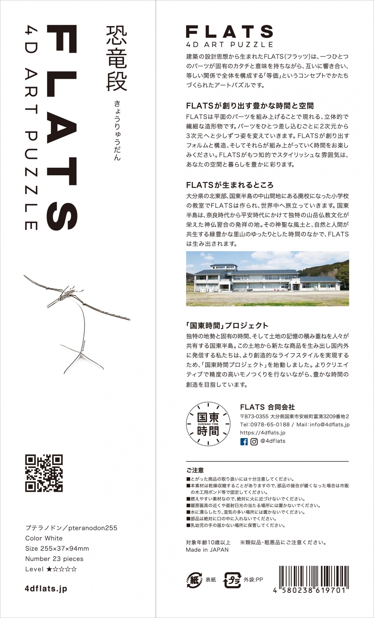 FLATS 恐竜シリーズは恐竜をモチーフにした組み立てキットです。ステゴサウルス、ヴェロキラプトル、トリケラトプス、ティラノサウルス、ブラキオサウルス、そしてプテラノドンの全6種類。ご注文に応じて大型モデルの製作も可能です。