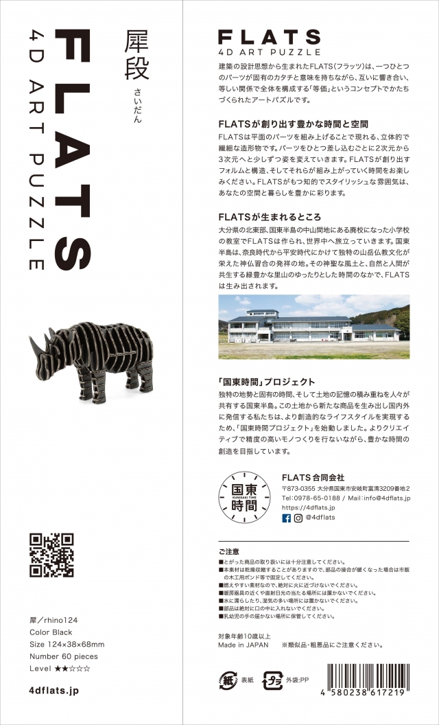 FLATS「犀段(さいだん)」はシロサイをモチーフにした組み立てキットです。