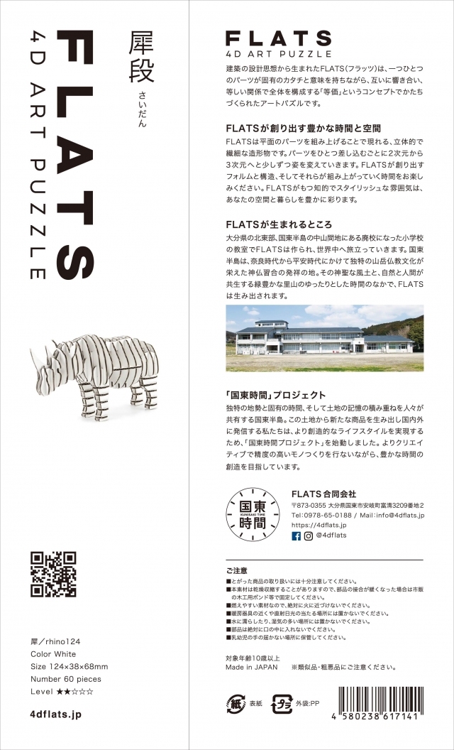 FLATS「犀段(さいだん)」はシロサイをモチーフにした組み立てキットです。