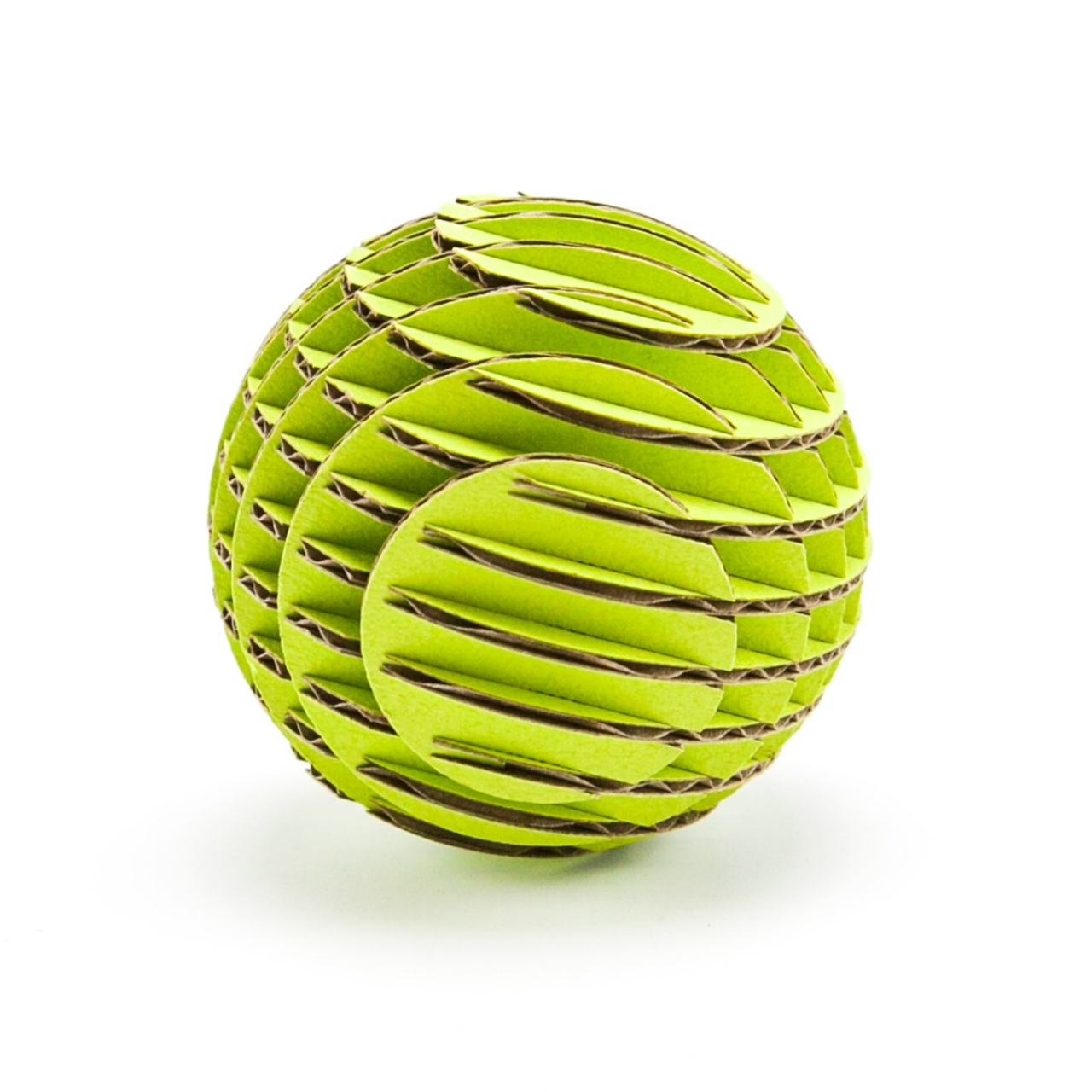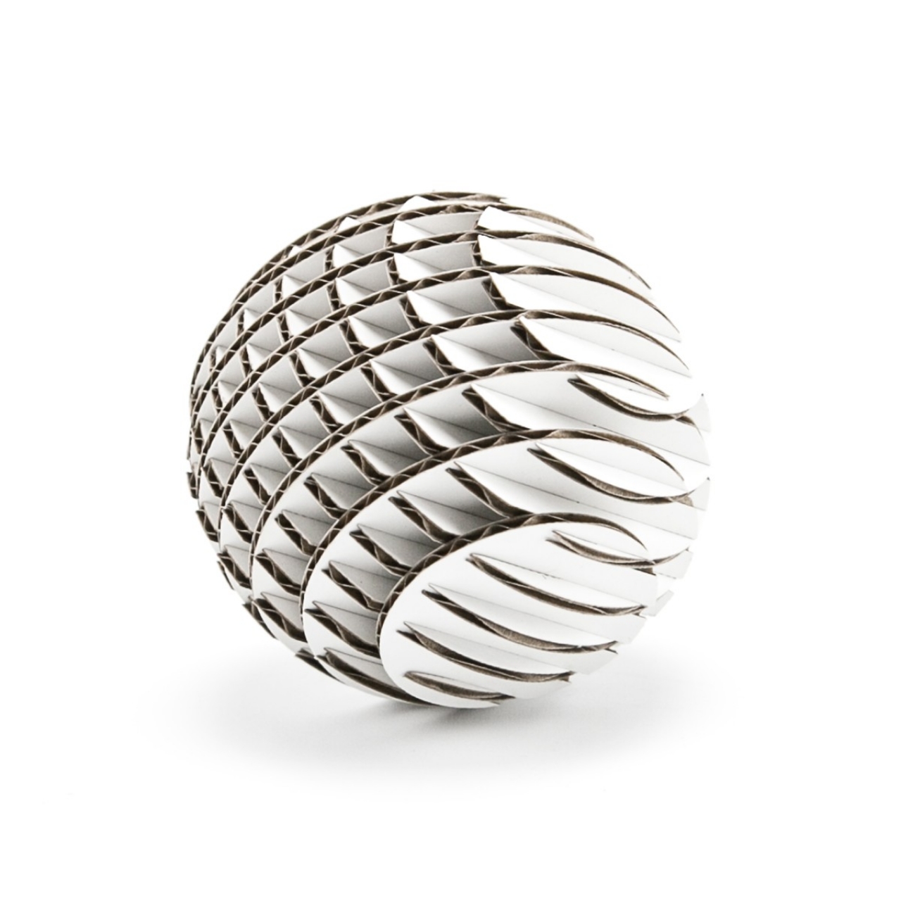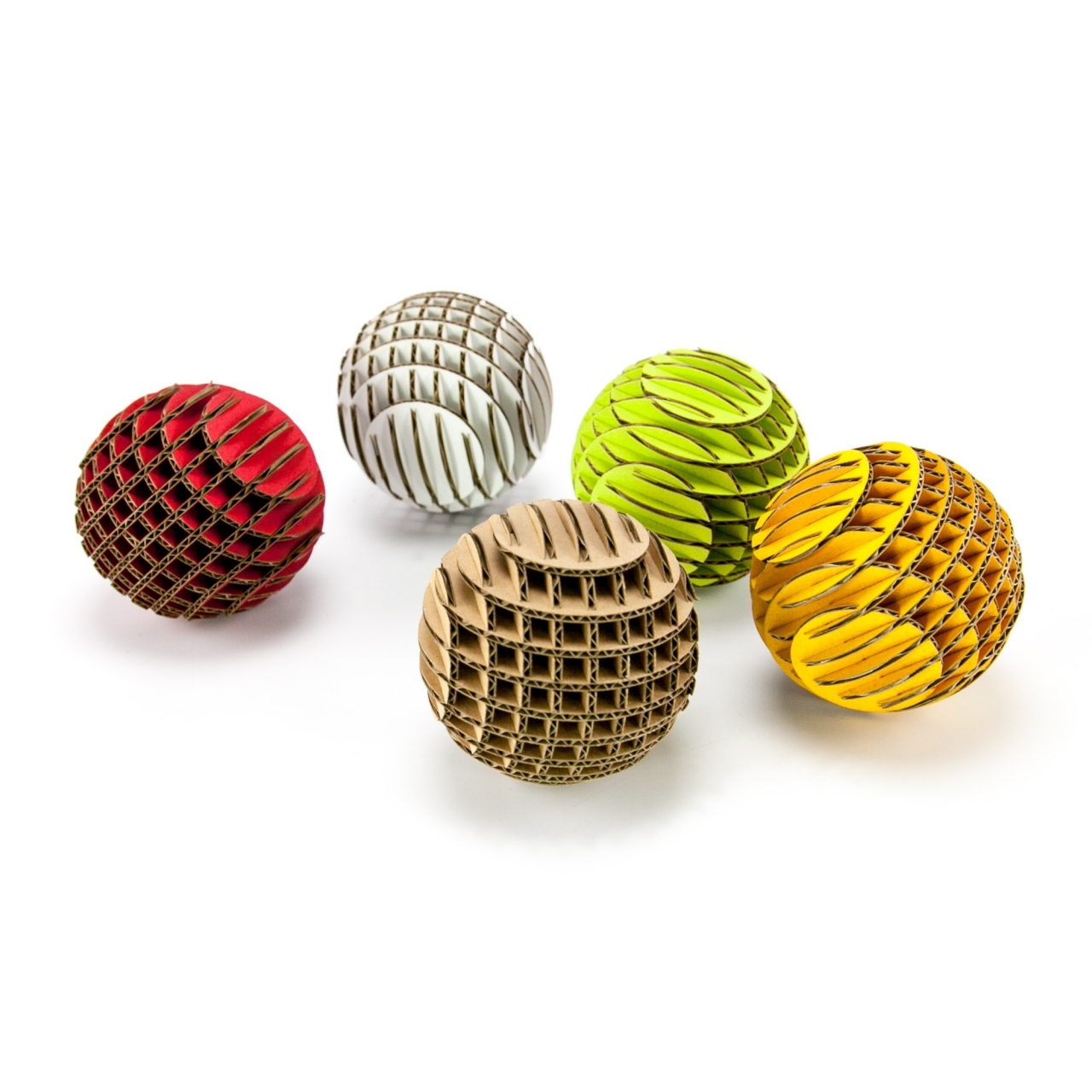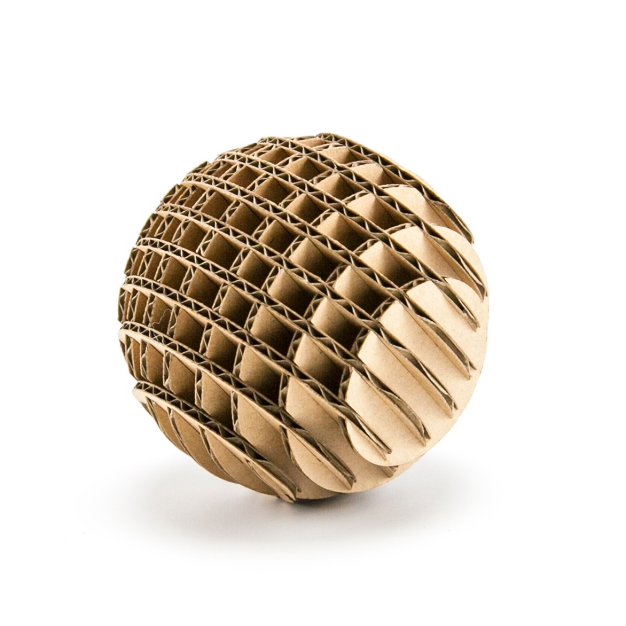 FLATS「ボール段」は球体をXY方向にそれぞれ9軸で切断・再構築した段ボール製組み立てキットです。