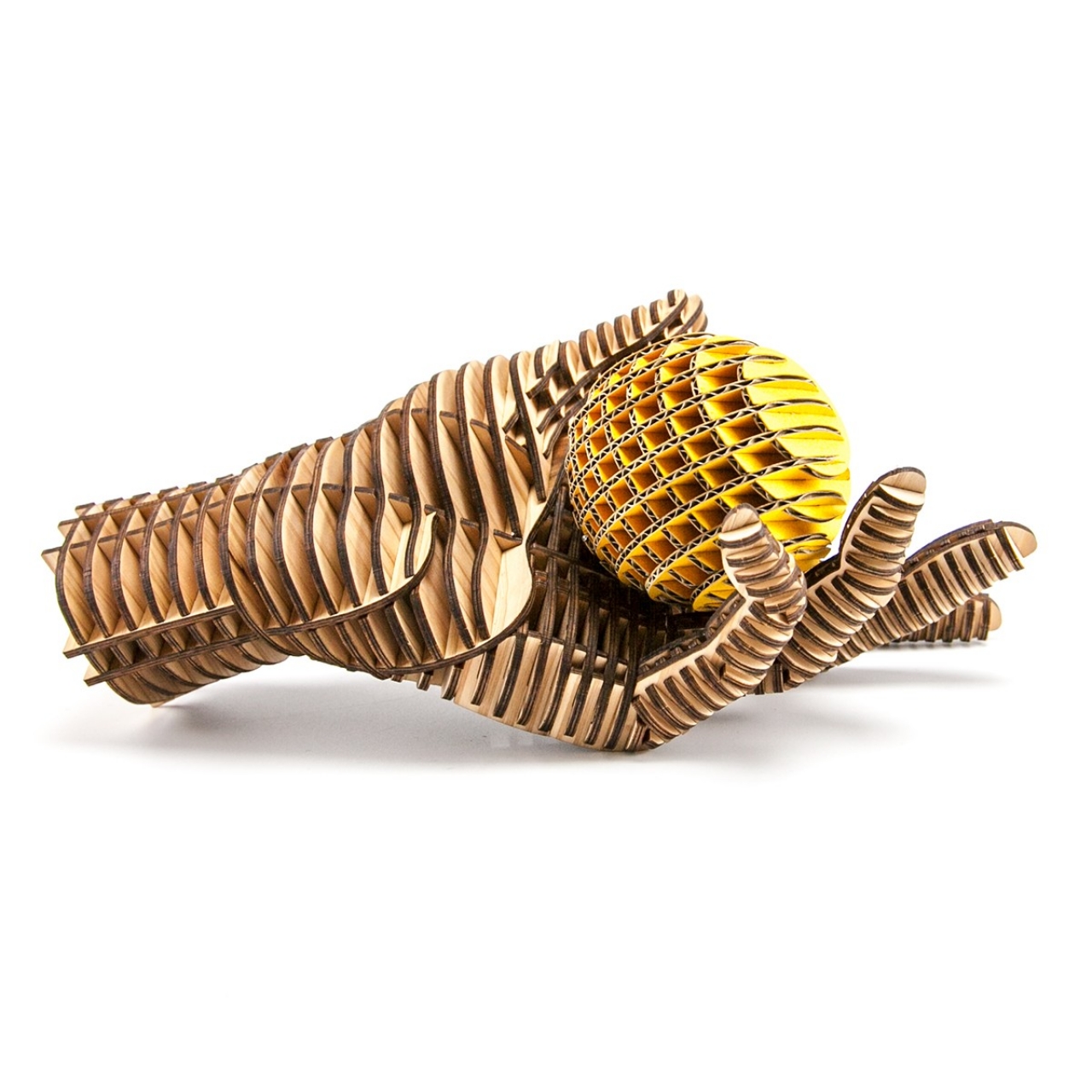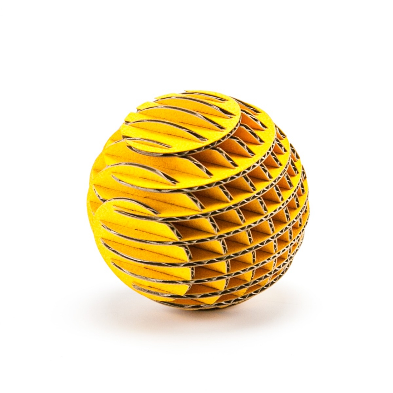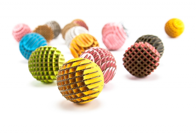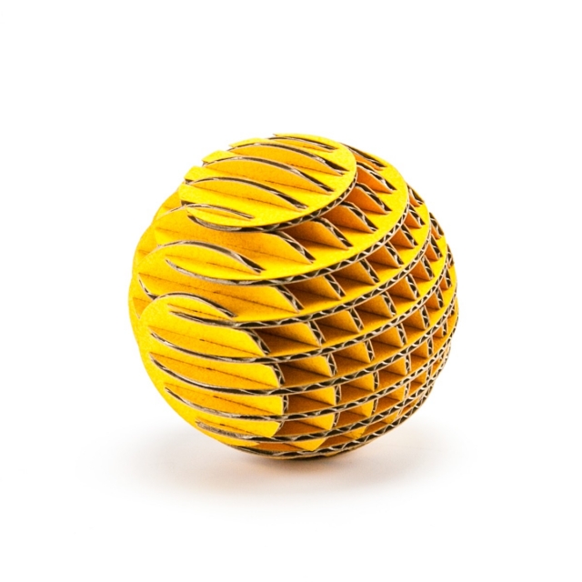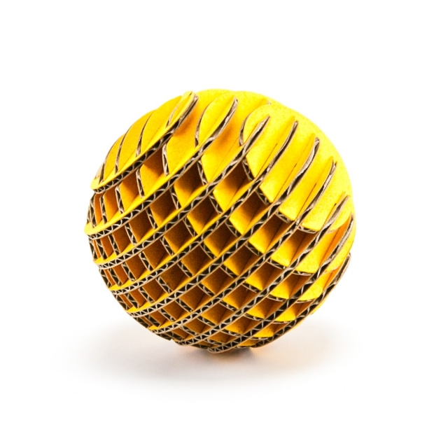 FLATS「ボール段」は球体をXY方向にそれぞれ9軸で切断・再構築した段ボール製組み立てキットです。