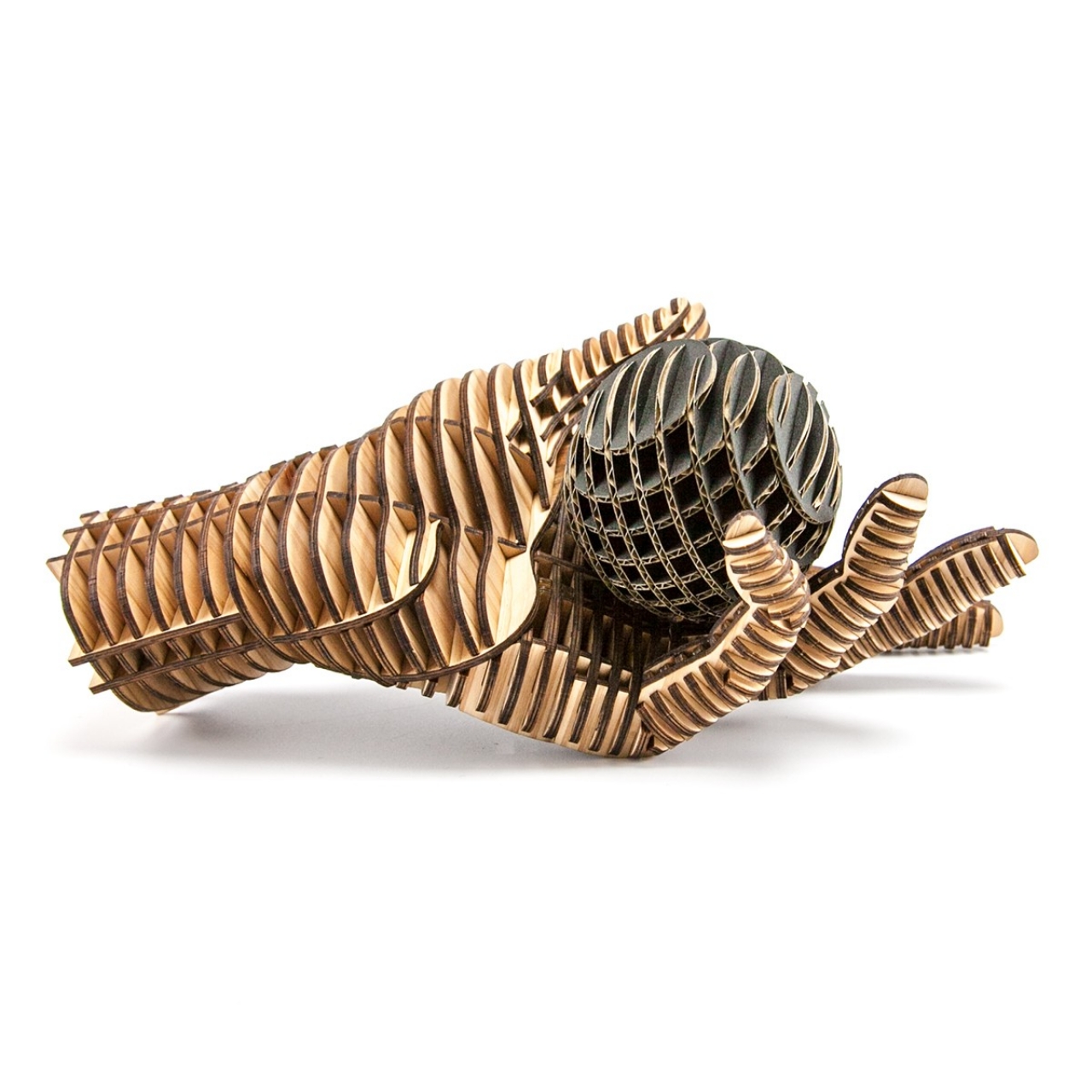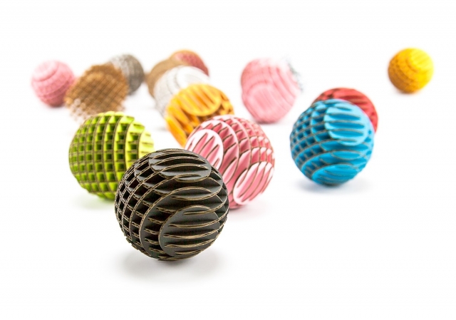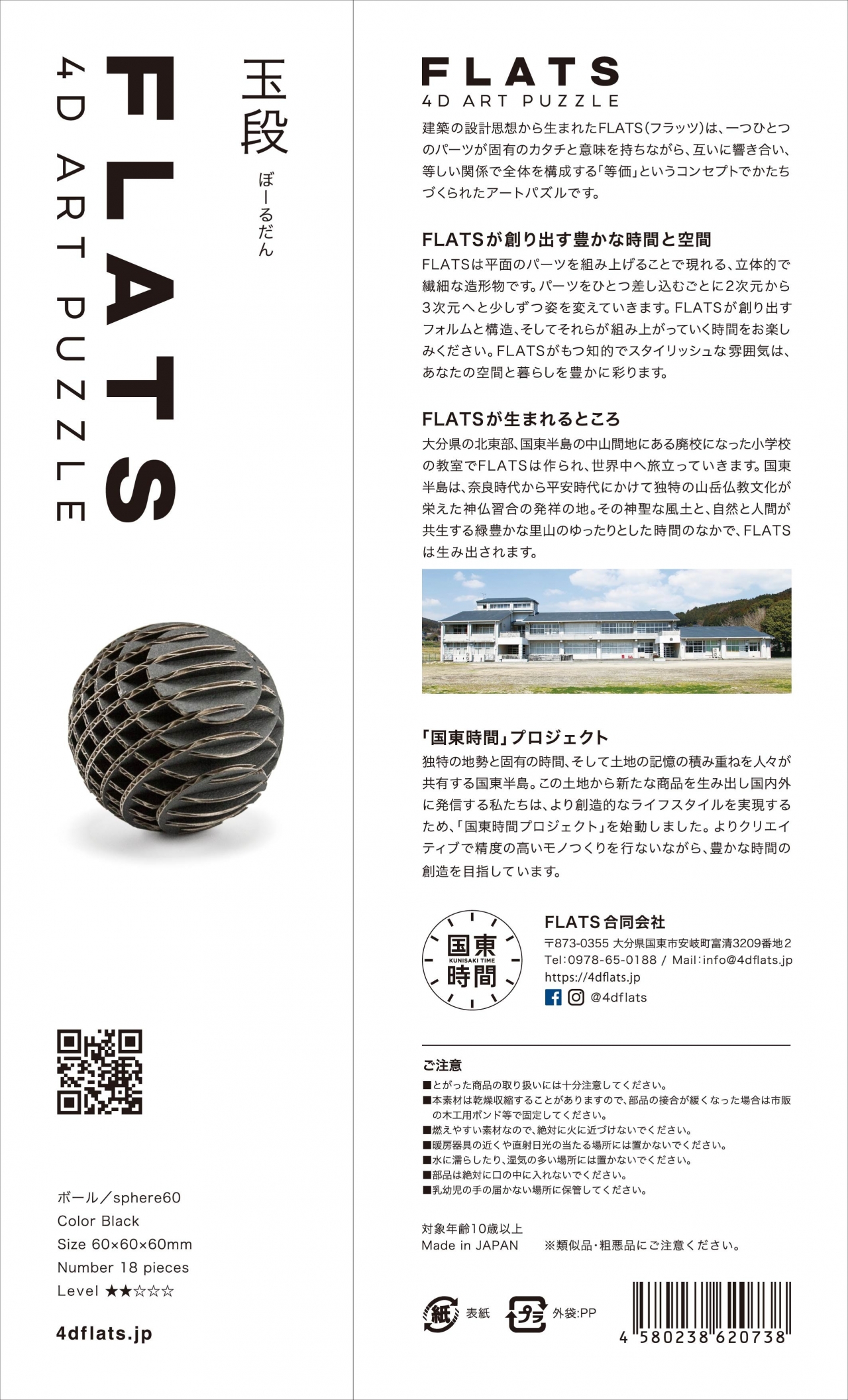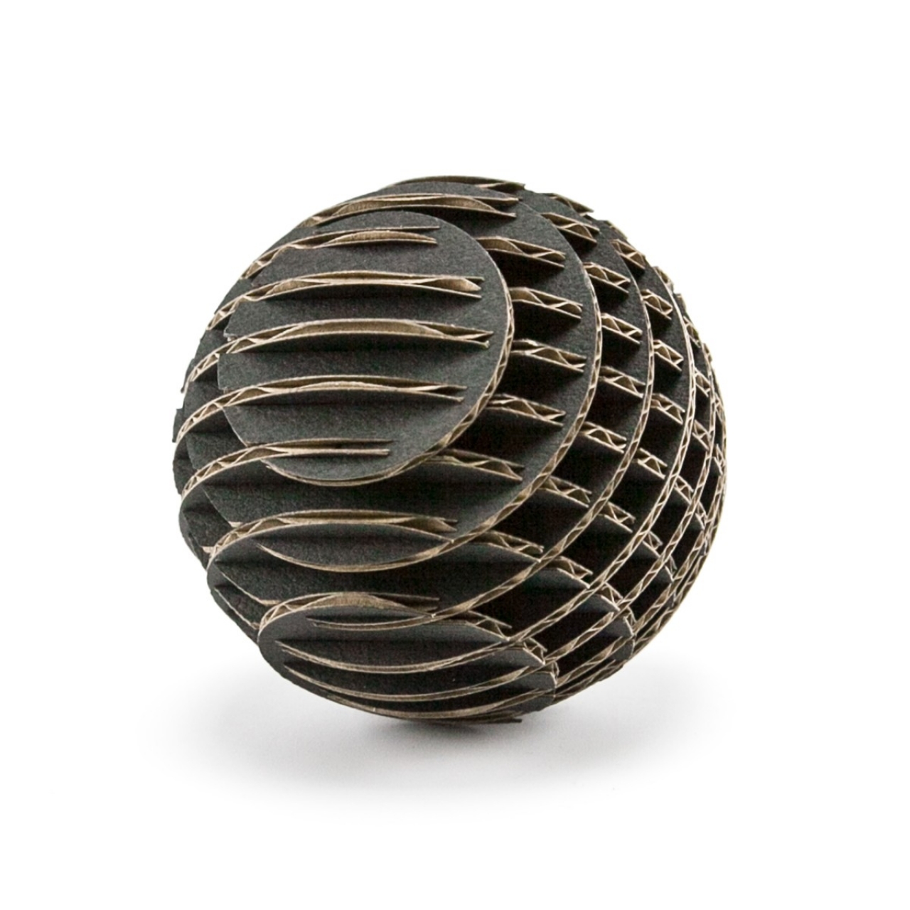 FLATS「ボール段」は球体をXY方向にそれぞれ9軸で切断・再構築した段ボール製組み立てキットです。