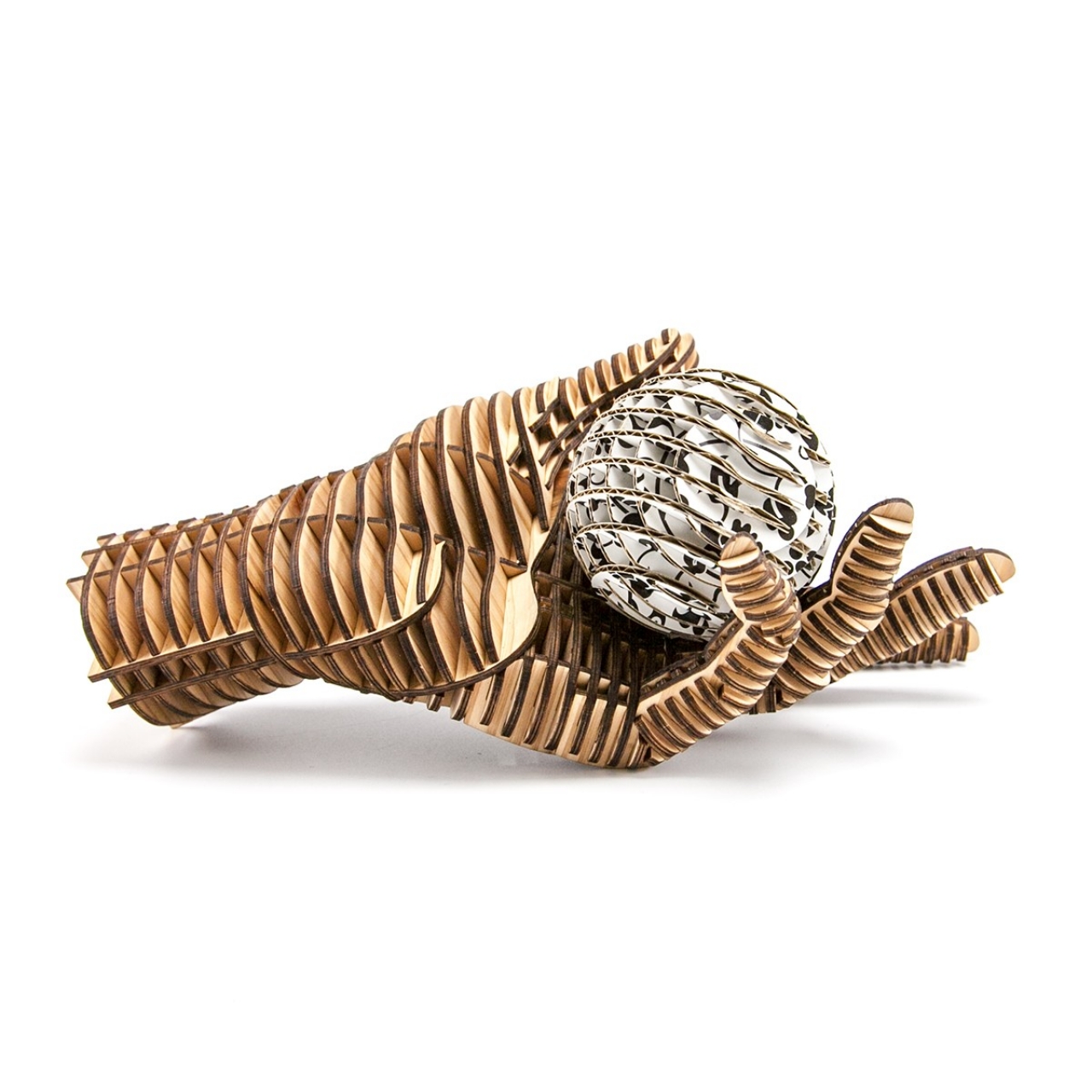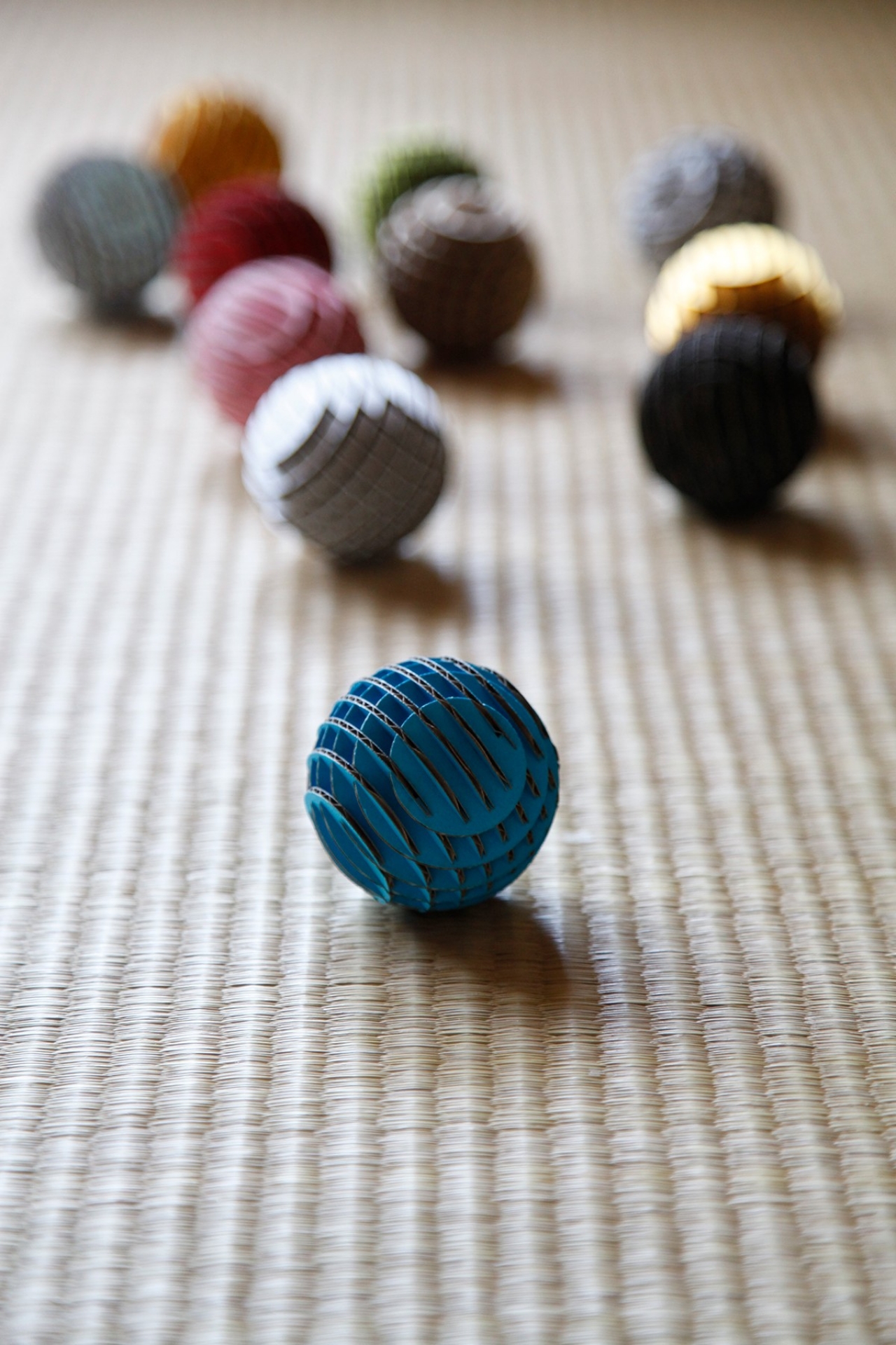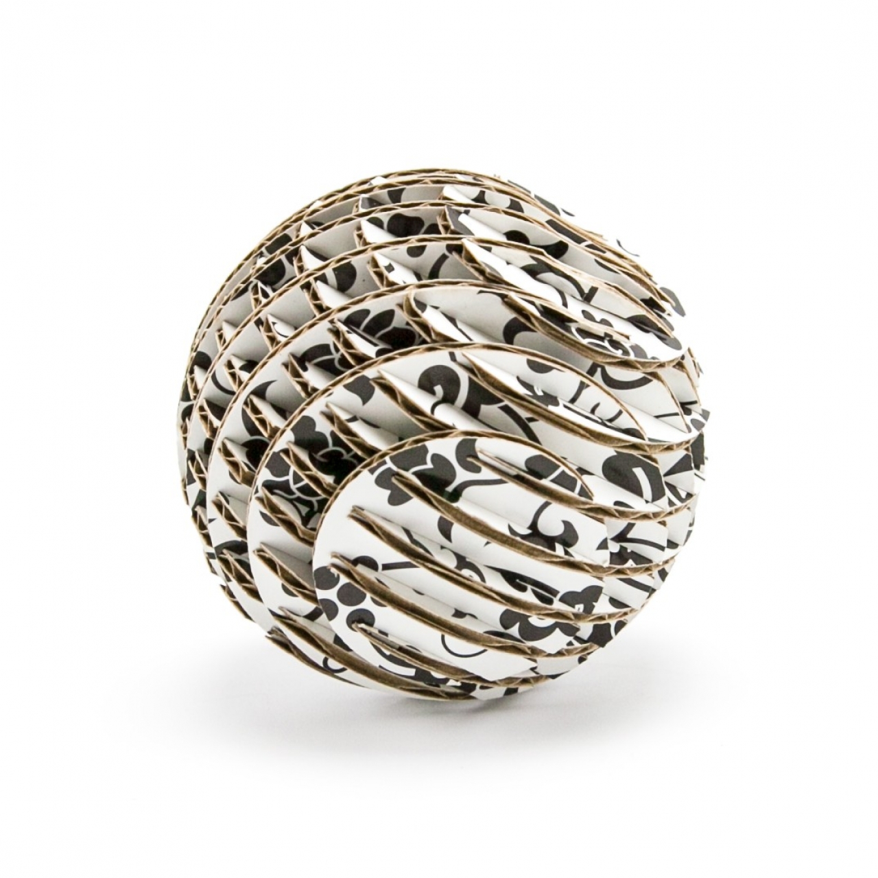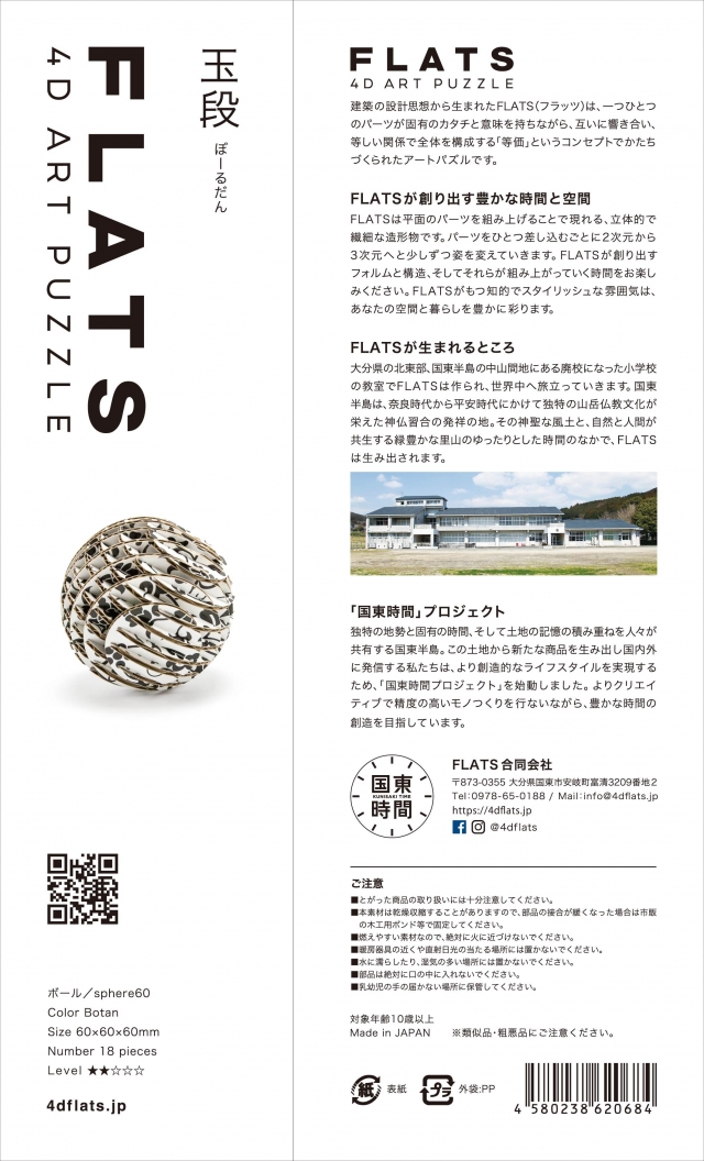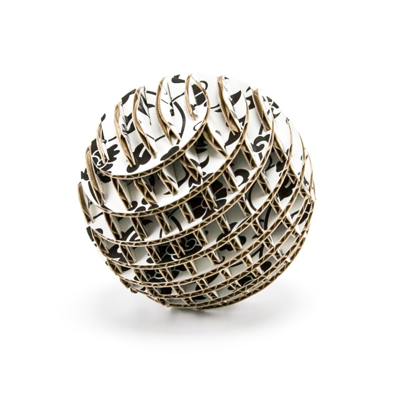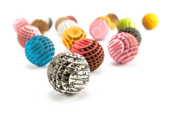 FLATS「ボール段」は球体をXY方向にそれぞれ9軸で切断・再構築した段ボール製組み立てキットです。