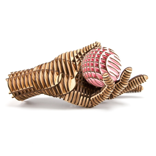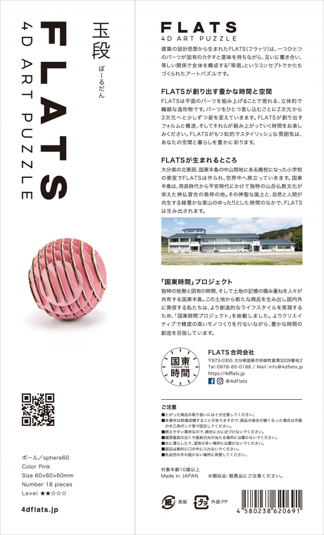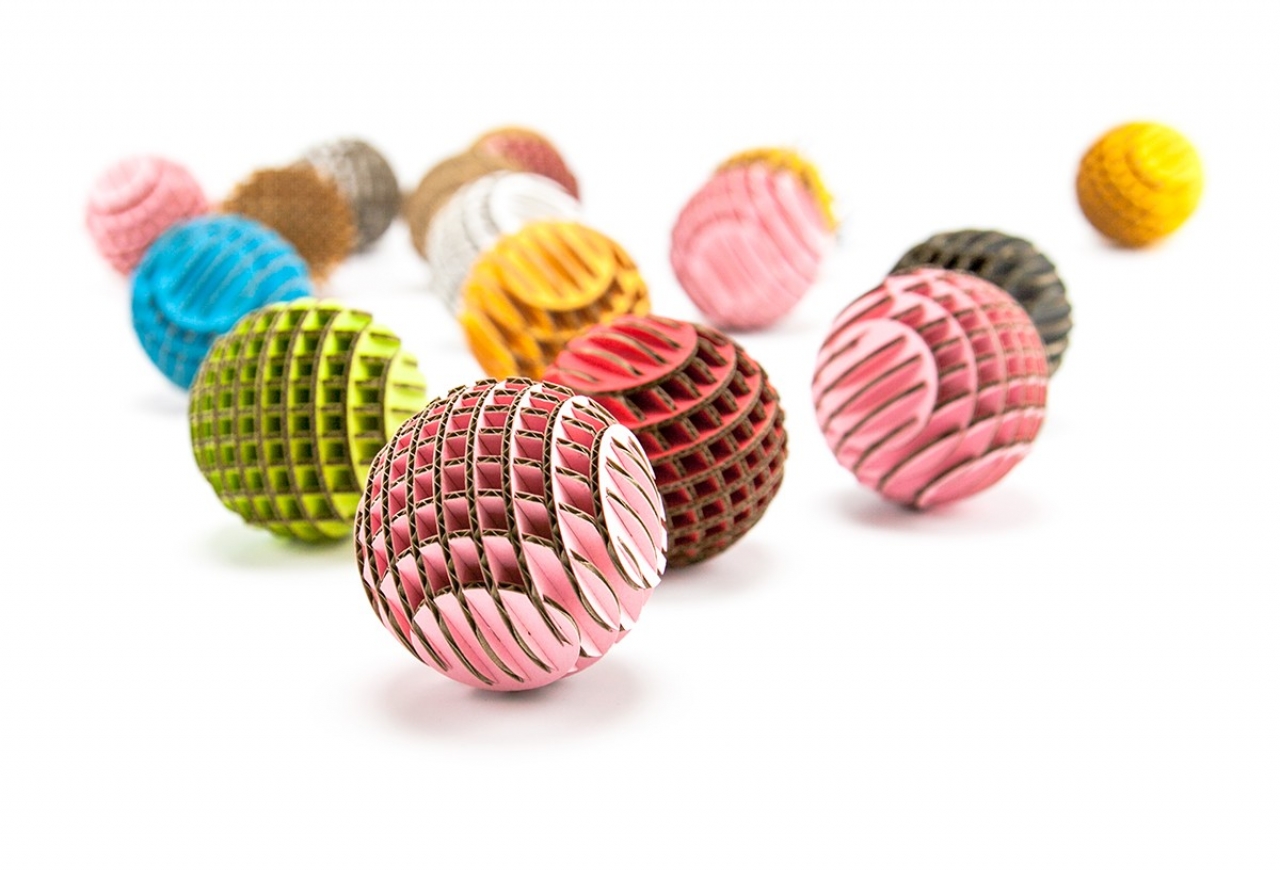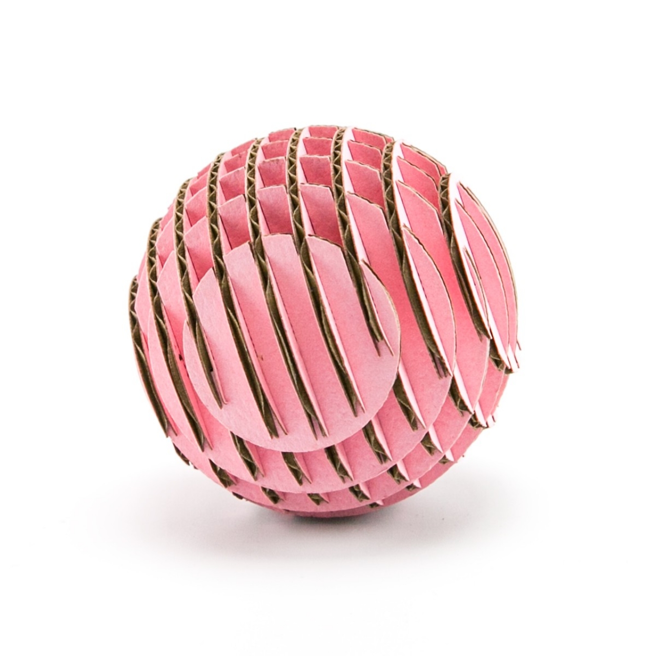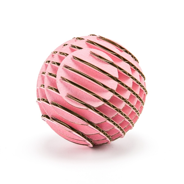 FLATS「ボール段」は球体をXY方向にそれぞれ9軸で切断・再構築した段ボール製組み立てキットです。