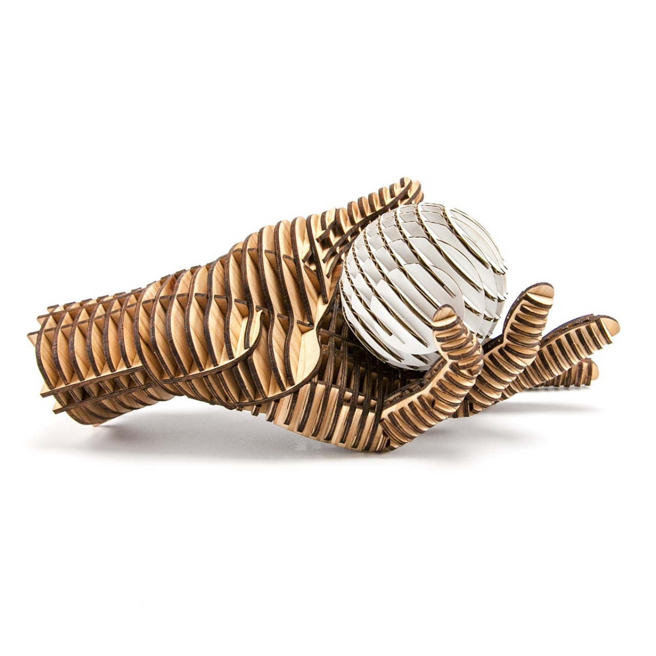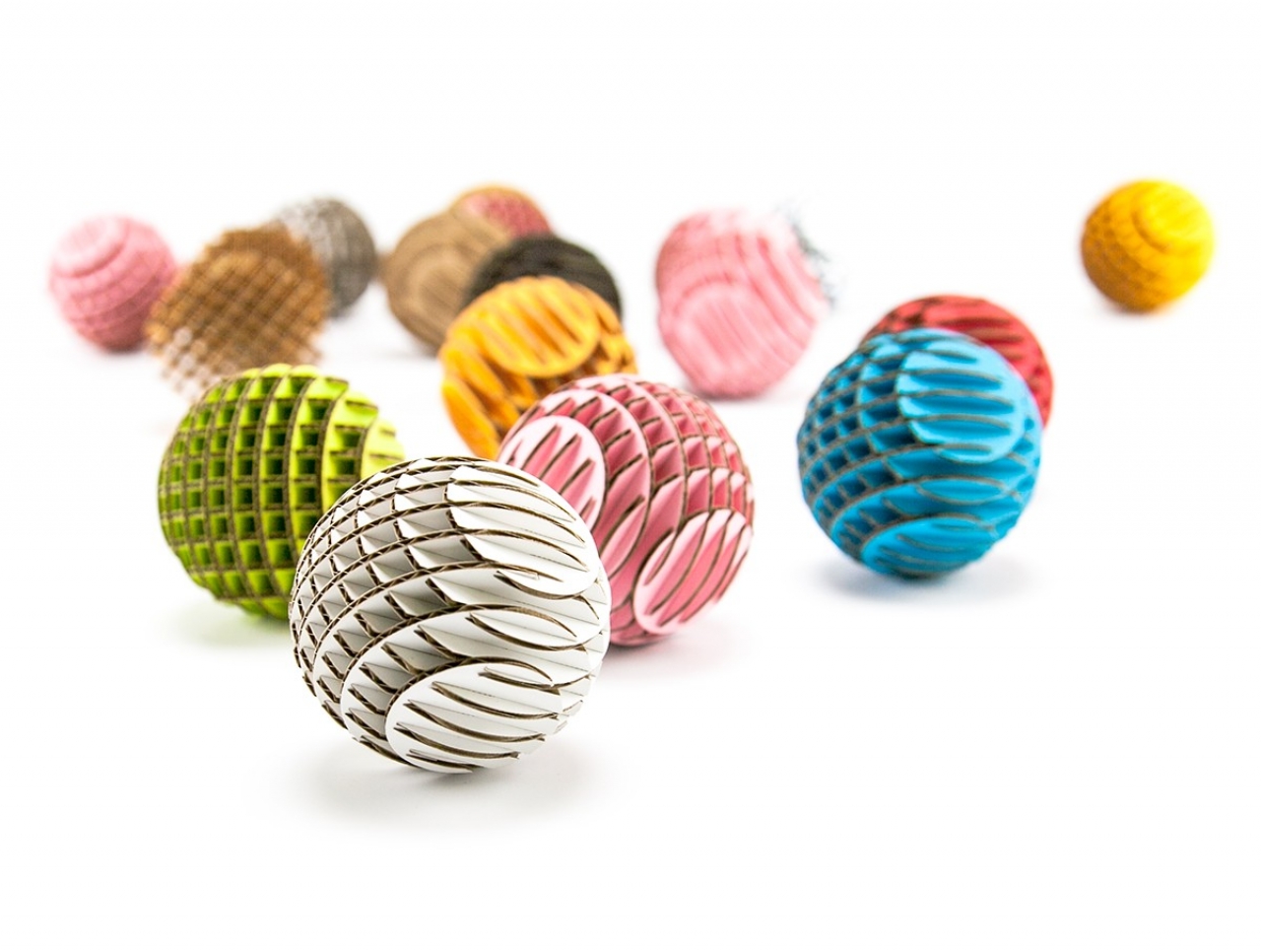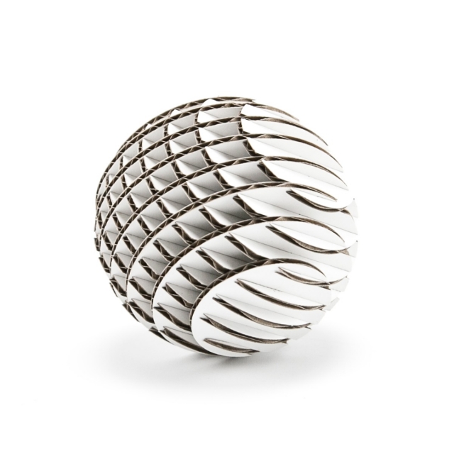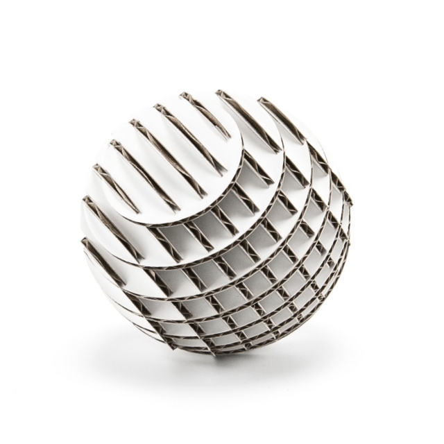FLATS「ボール段」は球体をXY方向にそれぞれ9軸で切断・再構築した段ボール製組み立てキットです。